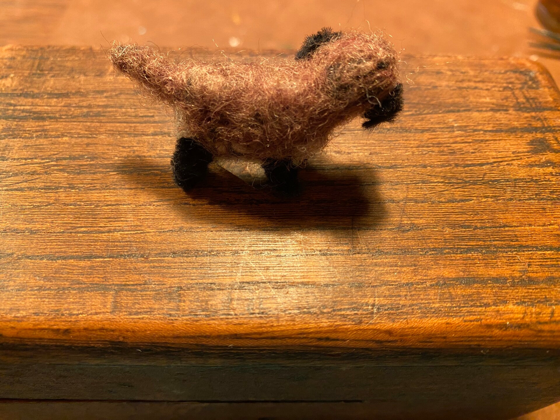 Gemaakt van chenille draad, afgewerkt met wil vilt